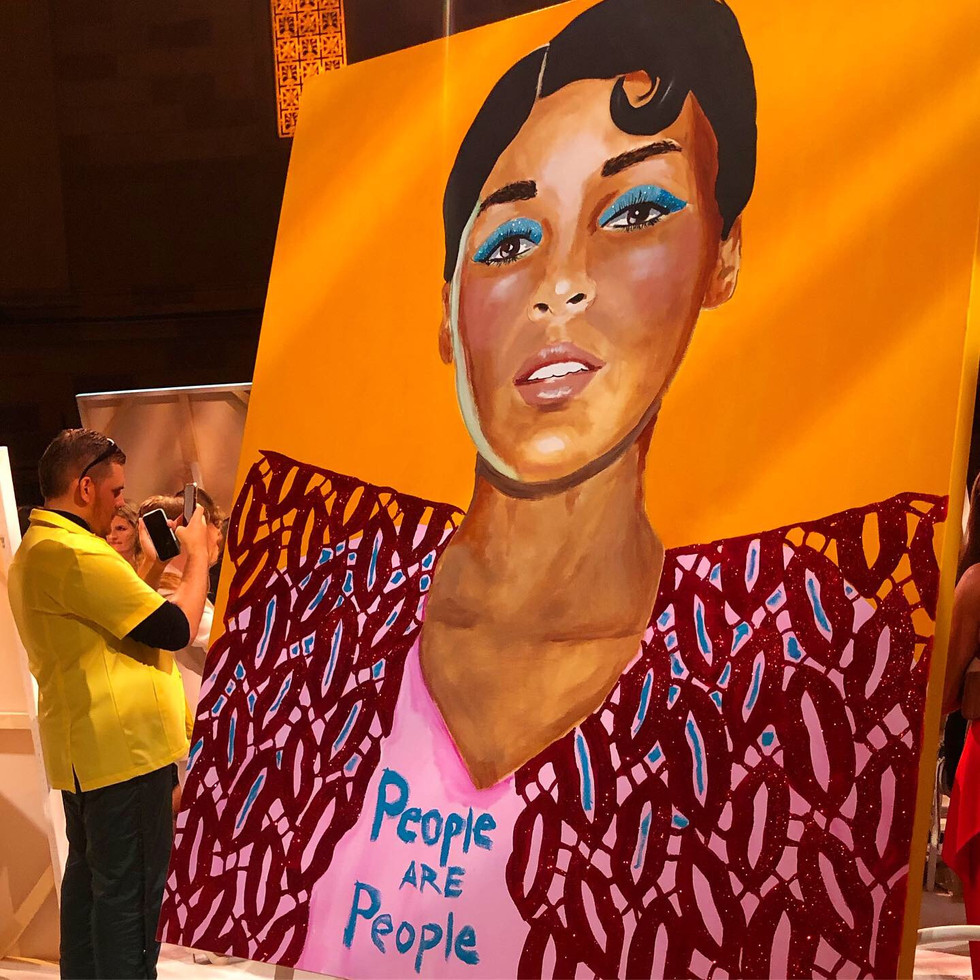 Giant canvass of Laverne Cox, Lady Gaga, Janelle Monáe, Kate Moss and Frida Kahlo were some of the many paintings arranged down the main straightaway. It was clear that Christian Siriano’s latest offering was heavily inspired by the New Orleans artist Ashley Longshore. Being a devout Longshore Instagram follower, I caught myself before letting out a resounding “hell yes” (which would have been followed by the appropriate hand-air-snatching motions). If I did cry out in elation, I would not have been alone. It seemed as if everyone was sipping from the same tonic of excitement; girl power, shaken not stirred with a sprig of mint!